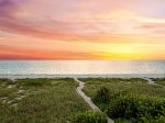 Beachfront Bliss: Enjoy direct beach access with a staircase leading to the pristine sands. The beach level also features a ping pong table, foosball, bag toss, swings, and a manicured landscape perfect for lounging.
