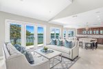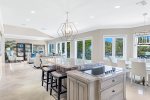 Point of View on world-famous Captiva Island, Florida. Our five-bedroom/four and a half bathroom ultra luxury vacation home has sleeping for up to 16 guests with a private pool/hot tub and dock. Easy beach access is a short walk down the driveway and just across Captiva Drive. We call the home Point of View, as you can look out the front of the home and see the Gulf of Mexico, and behind the home, the Roosevelt Channel. It doesn't get much better than that. The lower level of the home has an expansive room with two queen murphy beds and a king bed with a flat panel TV and a full bathroom. Upstairs on the main level is the owner suite with a king bed, en-suite bathroom, and bedroom/TV room just beyond that is accessible from the room or the main area of the home with a sleeper sofa. There is a full kitchen equipped with everything you could imagine to prepare meals for your entire family and friends. The top level has two suites, both with king beds and en-suite bathrooms. The rooms also have an additional attached room, one with a queen bed and another with a bunk bed (twin over full). Perfect for parents and their smaller children. In the pool area, there is plenty of seating, games, and more. The pool is heated to 86 degrees while the hot tub is set to a comfortable 102, when the pool heat is not in use. Prepare a BBQ with our Weber grill and watch the dolphins and manatees swim by on the Roosevelt Channel. For easy access to the shops and restaurants, consider renting a golf cart from a local vendor. We'll look forward to welcoming you to Point of View on your next Captiva Island vacation.