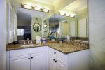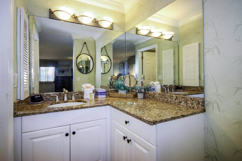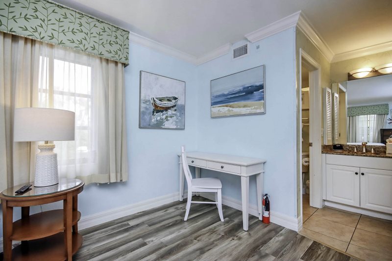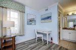 As an end-unit, Villa 4102 is bathed in natural light, creating a bright and inviting atmosphere. The flexible floor plan allows you to use the space as two separate areas or one large, open living space. The primary bedroom features a comfortable king bed and a private ensuite bath. The second living space includes a second bathroom, a fully stocked kitchen, and a cozy family room with a queen-size sleeper sofa. A hallway door can separate the two spaces, offering extra privacy and quiet for a relaxing vacation.