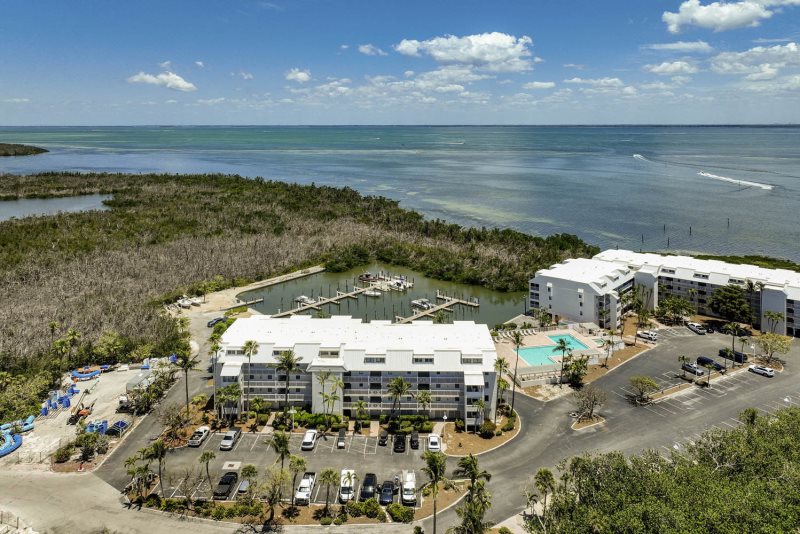 This unit has its own amenities, including a large lanai with a quaint marina, beautiful sunrise views,