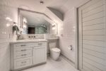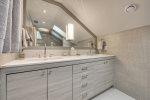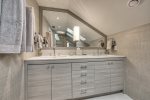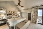 Upstairs Guest: Features two built-in Queen beds, a vaulted ceiling, and an en-suite bath.