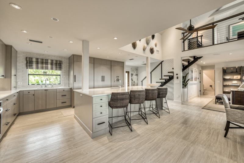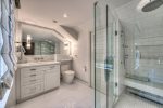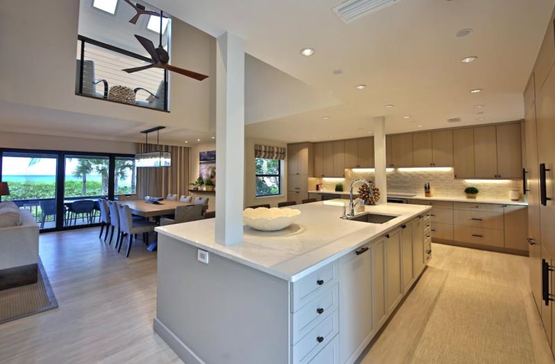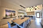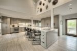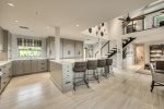 Gourmet Kitchen: The fully equipped kitchen boasts beautiful quartz countertops and a dining area with seating for eight, making meal prep a joy.