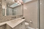 Upstairs Primary Suite: Offers stunning Gulf views, a vaulted ceiling, a King bed, and a 55" TV with an en-suite bath.