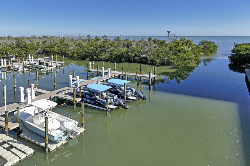 Enjoy amazing, unobstructed views of the Roosevelt Channel and Pine Island Sound directly from your private, spacious screened lanai—the perfect spot for watching dolphins and boats go by.