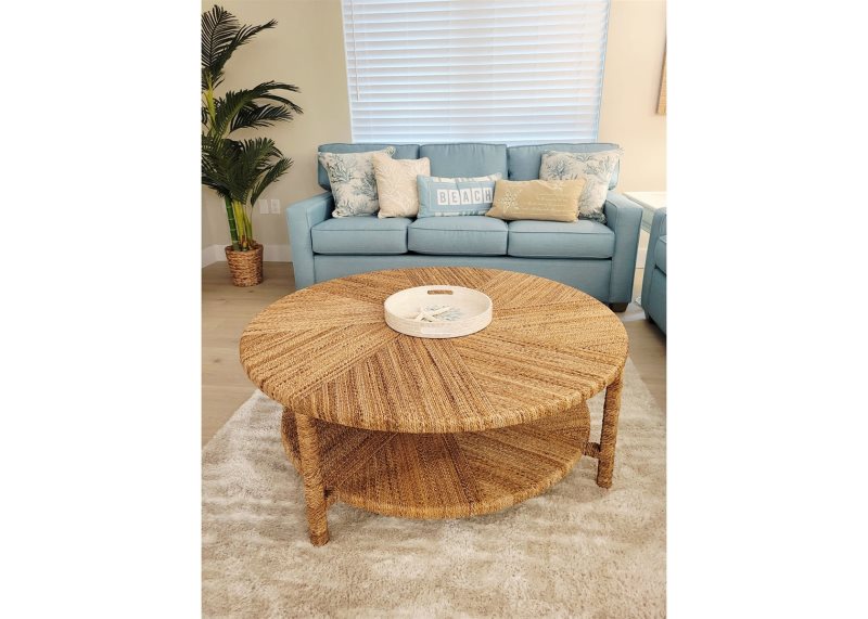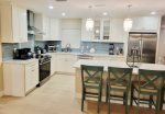 This unit comfortably sleeps 6 with one king and two queen beds, as well as a sleeper sofa. There’s room for two more at the dinner table, which seats 8, and the well-equipped kitchen with expansive island provides casual seating for 4. For those who