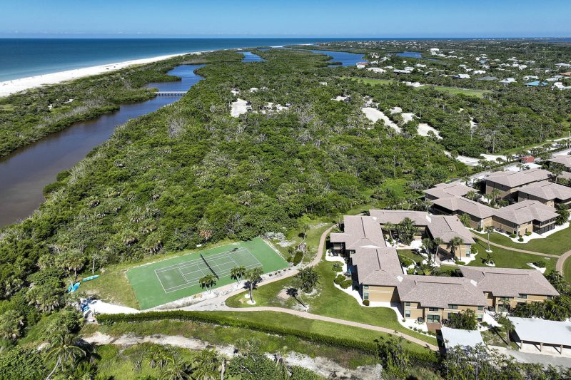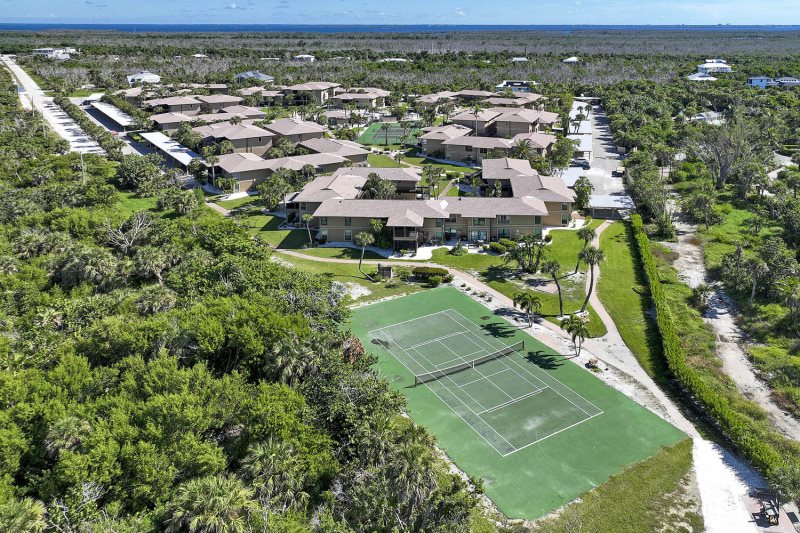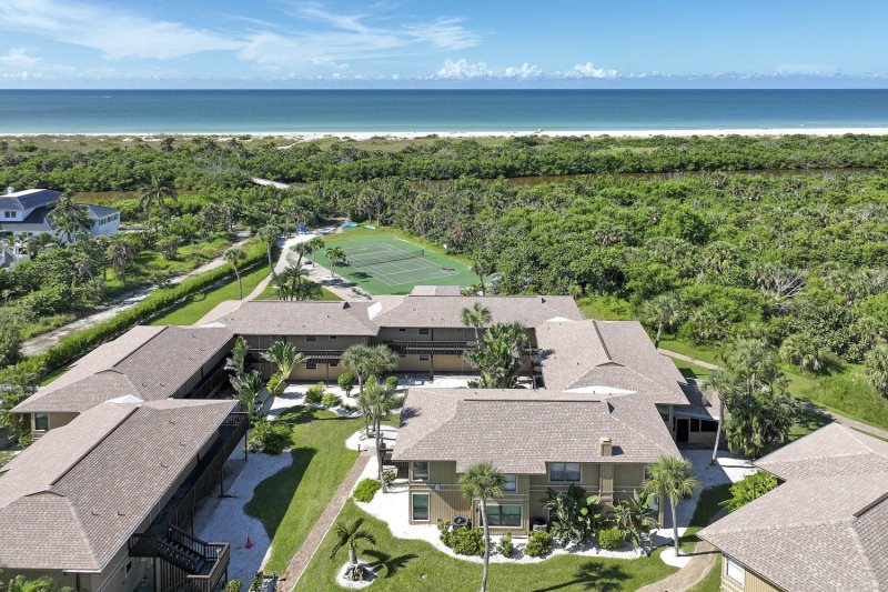 Sanibel’s center. Onsite amenities include a heated swimming pool, tennis and pickleball courts, barbecue grills, and covered assigned parking. Blind Pass also offers you private access to Sanibel’s most desirable beach, a private kayak launch into Clam
