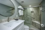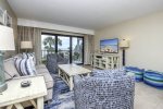 Designer Living Spaces: Recently reimagined with a contemporary flair, the open-concept living area features plush seating and a queen sleeper sofa, providing ample space for the whole family to gather.
